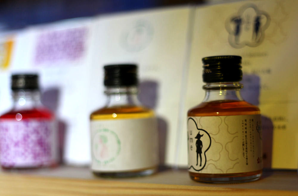 ※ミニボトルサイズの梅酒。梅酒(長期熟成原酒)以外に、和三盆糖梅酒、ハーブ梅酒、ゆず梅酒、きんかん梅酒、紅芋梅酒、等。